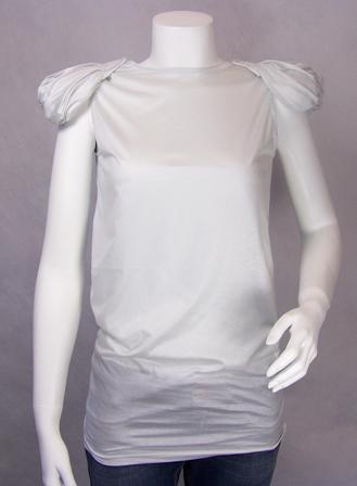 A couple of these puppies sold (don’t you always have those shoulder pads on things on your charity donation rack, some sleazy jersey T-shirts around, and a needle and thread available?) and next month’s rent is in the, you should pardon the expression, bag.