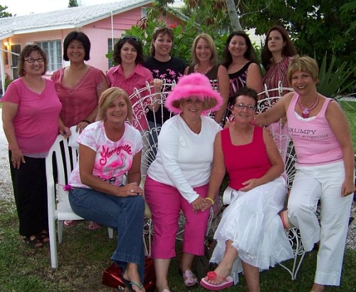 What a great pic, too bad Kate H. and Cathy couldn’t have been in it. The hat is so you Kate B! Julie….where’s the rest of you? Congrats on your weight loss!! You look fabulous, not that you didn’t before….:-) Love your shirt Carolyn! You all look great in pink!
