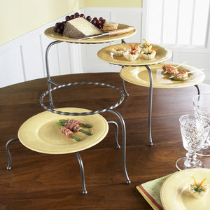 Bonuses: Swivels to suit your presentation, collapses for storage, and you use whatever plates suit your decor. Oh, and you can use it for home-baked goodies at your next promotional event as well. Invite me.