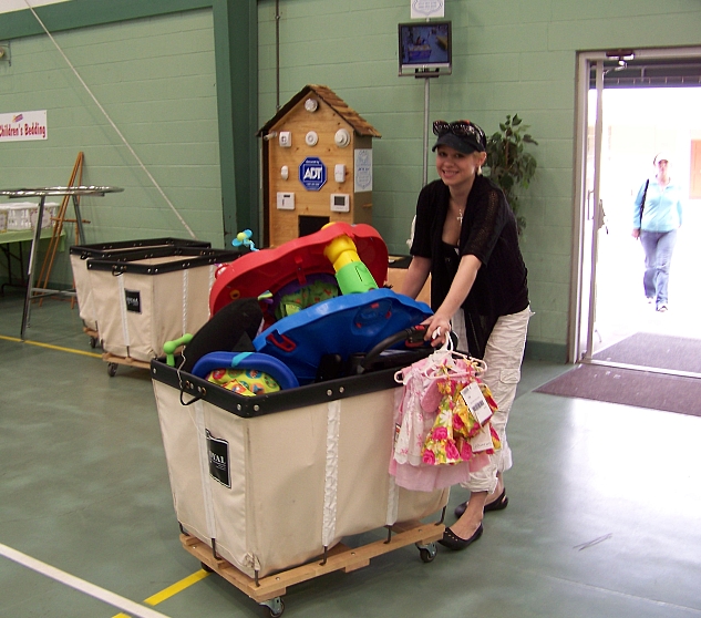A necessity for seasonal sales: laundry carts so consignors can put their own big items on the selling floor.