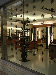 I love them all – the last one especially because it takes up NO space at all. Like a lot of shops, we never seem to have extra room so I like the idea of either window painting or something flat that you can still see through, not too busy.