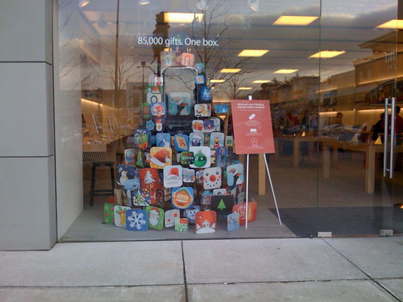 Build a tree-shape with gift-wrapped boxes. Put colorful merchandise thereon. Add a big (twinkle-lit?) star on top and add signage: BE the Holiday STAR to your family with gifts from…