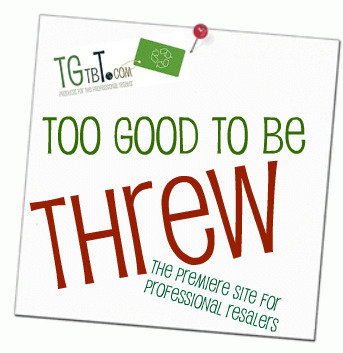 Again... does the kooky font really emphasize TGtbT as The Premiere Site for Professional Resalers? Plus the recycle symbol here is so skimpy, it appears I am using "to" instead of "too" and you know how I hate grammar mistakes!