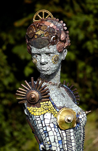 Make a mannequin mosaic. You don’t have to use found objects or mirrors or tiles. I’ve seen wonderful mannequins decoupaged with newspapers, cancelled postage stamps, fabric… heck, I’ve even seen wonderful mannequins painted in great ways.
