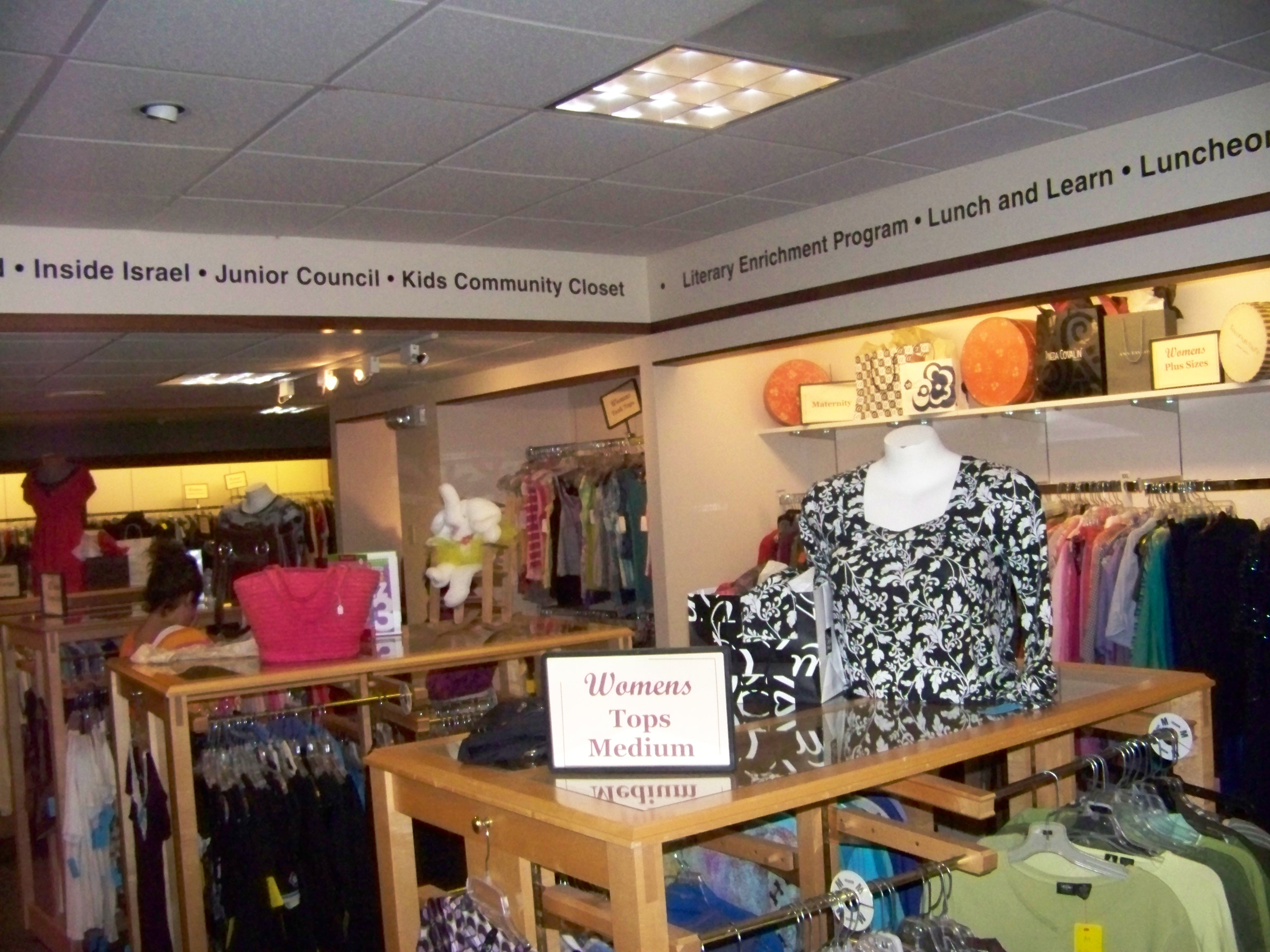 The photos here show how beautifully and effectively this can be done. TheResaleShop of the National Council of Jewish Women sponsors a wide range of charities, and they’re not shy about putting that information out there. On the soffits. On colorful banners flanking an entry. As a well-lit backdrop for a display area.