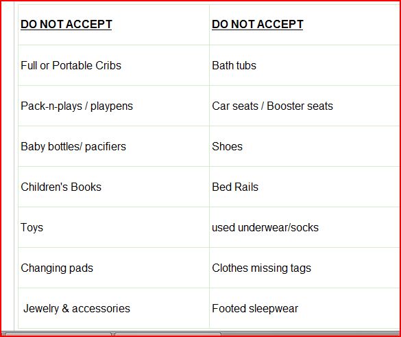 More thoughts on fewer words. The example below lists way too many “do-not-accept” items than really is needed. Bed rails? Really? How many of those do they have to say No thank you to in the course of a year?