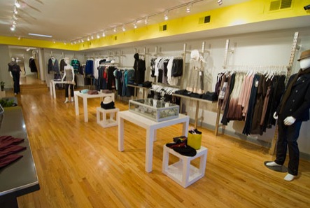 Stretches of empty wall, which will some day be filled with racks and display armoires, can be inexpensively fitted out for accessories, the way this shop did: