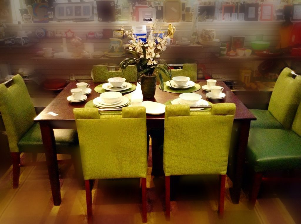 (Many thanks to the shop whose dining room set photo I used to illustrate this post. I’m sorry, I neglected to note your shop when I saved it. If it’s you, please let us know in the comments!)