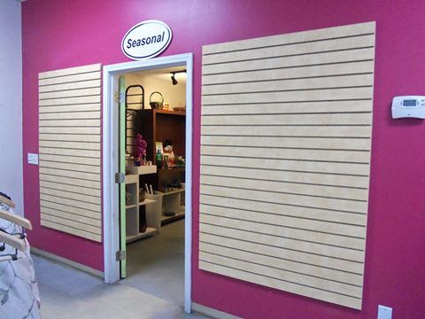 Dedicated “Celebration Station” floor space is especially useful for NFP donation-only thrift shops, whose plight is that they receive holiday-specific items generally 11 months before the holiday! The photo here is from a NFP consultation of mine. They added the spare slat wall and plan to use it to highlight whatever holiday is upcoming, and to include waterfalls of seasonal/ celebratory clothing as well.