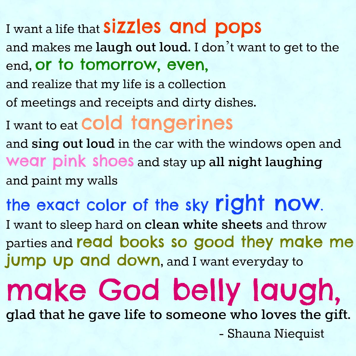 I love this (lightly-edited) quote from Shauna Niequist and I should have posted it here on my birthday. But it was International Resale Day, and I was busy doing my bit for the industry by shopping my little heart out. Sad to say, I didn’t find any pink shoes, but that’s okay. It gives me a chance to keep shopping, and to keep making God laugh.
